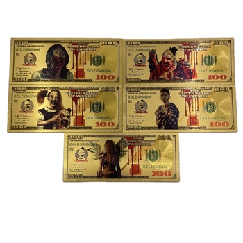 Envío Gratis Colección Terrifier Lámina de oro 100 Dólares Billetes de Banco de polímero Billete chapado en oro